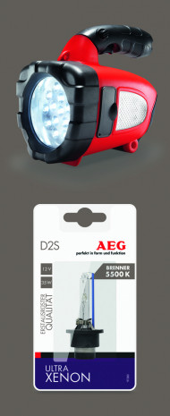 AEG bietet ein breites Sortiment an Leuchten rund ums Fahrzeug an. Beispielsweise sind diverse Handleuchten, Glühlampen und weitere Leuchtmittel für Fahrzeuge erhältlich. Bei den Halogen-Glühlampen sind unterschiedliche Linien mit Eigenschaften wie etwa besonders langer Lebensdauer, extra Helligkeit oder designorientierter Lichtfarbe verfügbar. Darüber hinaus sind auch LED-Leuchtmittel und Xenon- Brenner im Sortiment enthalten. www.aeg-automotive.com