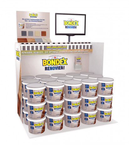 Bei Terrassenböden aus Holz, denen UV-Strahlung, Regen, Schnee und Frost im Laufe der Zeit Schäden zugefügt haben, helfen herkömmliche Schutz- und Pflegeprodukte oftmals nicht mehr. Dort, wo dann in den meisten Fällen der Abriss droht, setzt die neue "Bondex Renovier! Farbe" an. Sie erhält bereits verwittertes und geschädigtes Holz bis zu drei Jahre und verschafft so ausreichend Zeit, um kostspielige Neuanschaffungen zu planen. Das in den vier Farbtönen Anthrazitgrau, Steingrau, Terracottabraun und Erdbraun verfügbare Produkt füllt Risse und Löcher, sperrt Splitter und verleiht einen dekorativen, deckenden sowie schützenden Anstrich. Darüber hinaus sorgt die auch für Betonoberflächen geeignete Acrylfarbe für eine wasserabweisende, rutschfeste und barfußfreundliche Oberfläche.