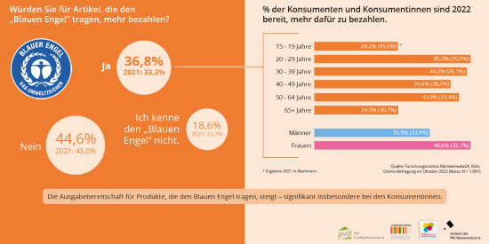 Insbesondere aus den Fokusthemen Nachhaltigkeit, Klimaneutralität und Digitalisierung ergeben sich neue Chancen. Das bestätigt die jüngste Konsumenten-Befragung, mit der das Kölner Forschungsinstitut Marketmedia24 im Auftrag der Branchenverbände Kaufprioritäten ermittelt hat. Demnach ist die Ausgabebereitschaft für Produkte mit dem Siegel Blauer Engel signifikant gestiegen.