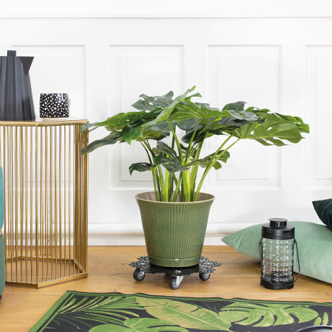 Eine weitere IPM-Neuheit von Wagner ist der „GH 0947“ im modernen Industrial-Stil. Der ausgefallene Pflanzenroller setzt drinnen wie draußen markante Akzente, denn seine Ladefläche ist aus Original-Baustahl mit Eisenmatt-Finish gefertigt. Sein Fabrik-Charme passt laut Hersteller bestens zu grünen Trendpflanzen wie Monstera, Calathea oder Geigenfeige, aber auch bewährte Klassiker wie Bogenhanf, Yucca oder Drachenbaum lassen sich effektvoll in Szene setzen.