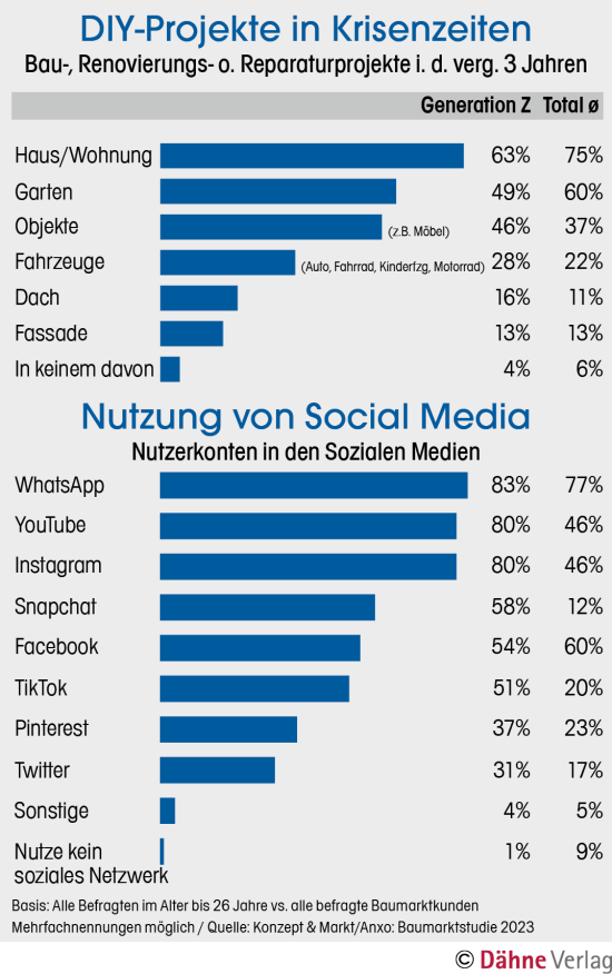 Es gibt also genug Anlass, sich mit dieser Zielgruppe – genauer: mit der Generation Z – zu beschäftigen. Genau das hat die Baumarktstudie 2023 von Konzept & Markt, Anxo und dem diy-Fachmagazin in einer Sonderauswertung getan.