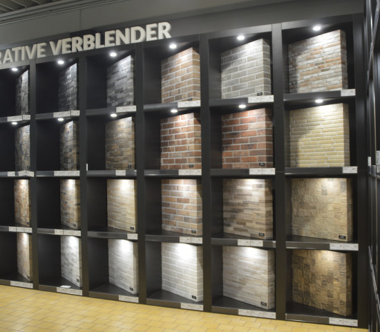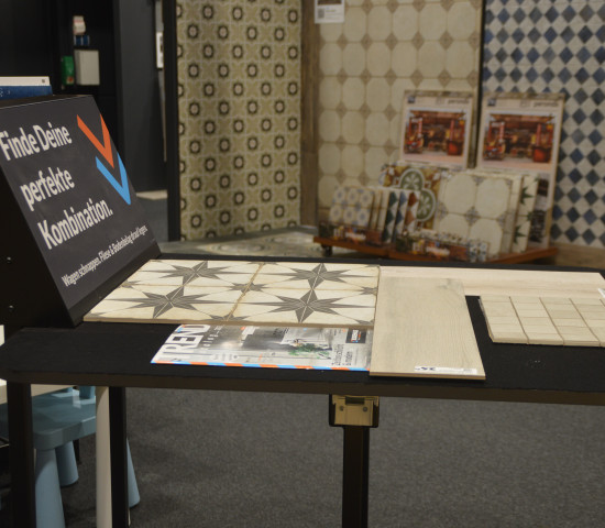 Für die Beratung der Kundinnen und Kunden stehen drei Theken und zwei mit Bildschirmen ausgestattete Design-Beratungsplätze zur Verfügung. Auf mehreren fahrbaren Präsentationstischen lassen sich verschiedene Muster vergleichen und beispielsweise auch einmal ans Tageslicht vor den Markt rollen. Schulungen werden sowohl für Profi- als auch für Privatkunden angeboten, einmal pro Woche gibt es ein Handwerkerfrühstück.