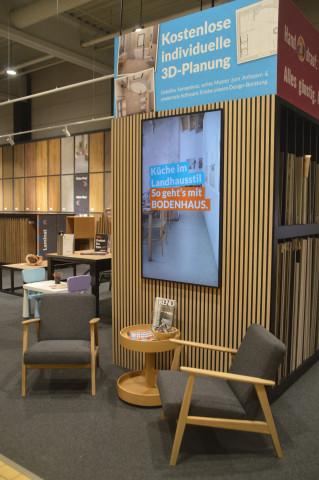 Dieses auf Hochwertigkeit angelegte Ladenbaukonzept funktioniert. „Die Verweildauer ist extrem hoch“, berichtet Christian Hünerfauth von den bisherigen Erfahrungen. „Die Kunden sind bis zu vier Stunden da.“ Mit „Kunden“ meint er übrigens durchaus und irgendwie vor allem auch Kundinnen: Wenn Paare oder Familien kommen, um den Boden für ihr Neu- oder Umbauprojekt auszusuchen, „ist es in der Regel die Frau, die entscheidet“.