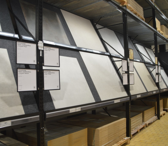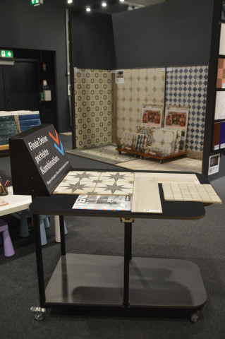 Ein für die Lernfähigkeit der Bodenhaus-Macher vielleicht typisches Detail sind die schwarzen Teppichboden-Unterlagen, auf denen großformatige Fliesen im Regal präsentiert werden: Sie ersetzen die bislang verwendeten glatten schwarzen Platten, die beim Sortimentswechsel viel zu schnell verkratzen können.