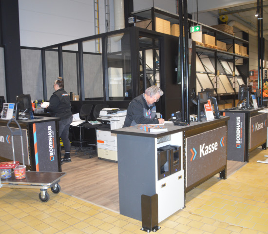 Sehr fachhandelsmäßig kommt auch das Serviceangebot daher, das über den Lieferservice für 39 Euro hinausgeht. So bietet Bodenhaus beispielsweise an, gekaufte Ware 100 Tage kostenlos einzulagern, damit sie bei Bedarf schnell auf der Baustelle verfügbar ist. Und auf dem Parkplatz vor dem Markt steht eine Containerbox für den Service „Reservieren & Abholen“ mit Platz auch für eine Palette; so kommen Handwerksbetriebe auch außerhalb der Geschäftszeiten (die schon recht profimäßig sind: 6:30 bis 19:00 Uhr unter der Woche, 8:00 bis 18:00 Uhr am Samstag) an die bestellte Ware.