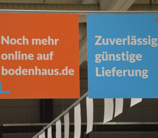 Andererseits: So ganz unnötig ist der Hinweis dann doch wieder nicht, wenn man den Auftritt dieses dritten Bodenhauses aufmerksam registriert: Der Claim „Teil der Hornbach Gruppe“ ergänzt den Bodenhaus-Schriftzug auf der Fassade, und die Werbung arbeitet mit dem Slogan: „Ein Hornbach voller Böden & Fliesen“.