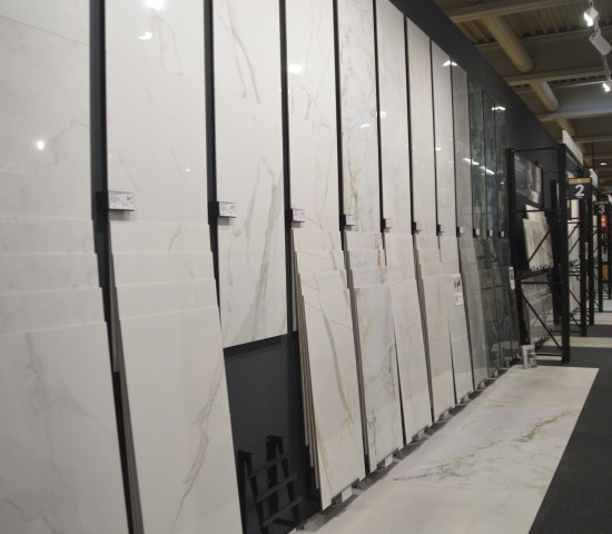 Denn Bodenhaus definiert sich eben ganz als Fachhandelskonzept und tritt auch in Mainz-Kastel so auf. Mit seinem lagergeführten Sortiment von mehr als 1.000 Fliesen, 300 Parkett-, Laminat- und Vinylböden sowie mehr als 200 Terrassenbelägen richtet es sich an Profi-Handwerker und mobile Generalisten, aber auch an Privatkunden, die ihr Projekt selbst in die Hand nehmen und den Boden selbst verlegen oder verlegen lassen. Deren Anteil am Bodenhaus-Umsatz betrug bislang rund 65 Prozent.