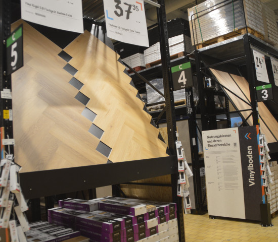 Dabei sieht man das auch so: Ein Baumarkt sieht anders aus. Zu gediegen-edel wirkt die Trend-Design-Galerie gleich rechts vom Eingang, zu schick die schwarze Regalierung, und vor allem: zu tief und Premium-geprägt zeigt sich schon auf den ersten Blick das Sortiment, als dass man diesen Markt für einen Baumarkt halten würde.