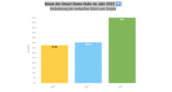 Eine ähnliche Entwicklung beobachtet auch der Onlinehändler Galaxus: 2025 wurden über die Plattform zwei Drittel (65 Prozent) mehr Smart Home Hubs – eine Steuereinheit für mehrere Geräte im vernetzten Zuhause – verkauft als im Vorjahr. Die Nachfrage wuchs hier schon 2024 um 40 Prozent.