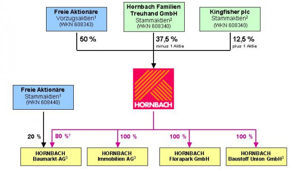 Das Familienunternehmen legt Wert auf die Feststellung, dass es seine Unabhängigkeit auch – oder, wie man meint: gerade – durch die Allianz „zweier starker Partner“ bewahrt. Ein Verkauf stimmberechtigter Aktien ist künftig nicht mehr ohne weiteres möglich. >Denn die Familien bringen ihre Anteile in eine Treuhand ein, die allein über weitere Verkäufe entscheiden kann. Alleinvertretungsberechtigter Geschäftsführer wird Otmar Hornbach, zweiter Geschäftsführer ist Albert Hornbach. Ein Erwerb von Aktien, die derzeit in Streubesitz sind, würde keinen Einfluss auf das Unternehmen bringen, weil es sich um Vorzugsaktien ohne Stimmrecht handelt.