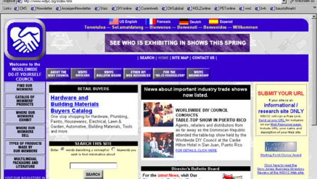 Mit einer neuen Website ist der Spitzenverband Worldwide DIY Council (www.wdiyc.org) jetzt online. Die Informationen über die Interessengemeinschaft und seine Mitglieder sind außer in Englisch auch in Deutsch, Französisch und Spanisch verfügbar. Abrufbar sind beispielsweise News oder die Messeaktivitäten der Mitglieder. Eine eigene Rubrik ist auch für Do-it-yourselfer eingerichtet.