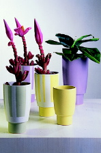 Mit dem Farbkonzept „Limit“ präsentiert Scheurich sanfte Pastelltöne, Multicolour und Streifen. Die Unis und Streifen befinden sich auf einer völlig neuen Formenserie. Die leicht geschwungenen Pflanzgefäße und Übertöpfe stehen auf einem Sockel. Dieser integriert die Innentöpfe und gewährleistet eine gute Passgenauigkeit. Die hohen Gefäße eignen sich zum direkten Bepflanzen und auch als Vase. (Scheurich GmbH & Co. KG, Gottlieb-Wagner-Straße 3,63924 Kleinheubach, www.scheurich.de)