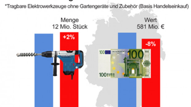 Im vergangenen Jahr wurden in Deutschland zwar mehr Elektrowerkzeuge abgesetzt als 2001, aber für weniger Geld: Wertmäßig ist das Volumen gesunken