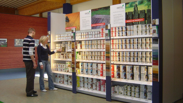 Auf 1.000 m² hat Osmo seine Angebote am Standort Warendorf in einer Ausstellungshalle gebündelt. Dort soll künftig allen Kunden die Möglichkeit geboten werden, sich über neue Produkte, Präsentationsmöglichkeiten und Marktentwicklungen zu informieren. Dargestellte Themen sind unter anderem Fußböden, Holzanstrich, Fassaden, Gartenhäuser, Sichtblenden, Terrassensysteme, Leisten und Leimholz.