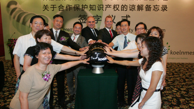 Die Koelnmesse hat gemeinsam mit chinesischen Geschäftspartnern ein "Intellectual Property Memorandums unterzeichnet, dass, so die Messegesellschaft, "ein deutliches Zeichen für einen fairen Wettbewerb im Rahmen von Messeveranstaltungen und gegen die Verletzung von Schutzrechten an ausgestellten Produkten" sein soll. Messechef Herbert Marner unterzeichnete das Papier vor Vertretern der Medien in Peking zusammen mit den Repräsentanten der Gruppenorganisatoren, die die Beteiligung chinesischer Aussteller am Standort Köln durchführen. Mit dem Memorandum, das in dieser Form erstmals von einer der großen europäischen Messegesellschaften initiiert wurde, verpflichten sich die Gruppenorganisatoren zur Einhaltung der entsprechenden gesetzlichen Vorschriften in Deutschland und darüber hinaus zu aktiven Maßnahmen, um auf den Messen den Schutz geistigen Eigentums zu fördern und die Verletzung von Schutzrechten zu vermeiden. Repräsentanten von rund 25 Gruppenorganisatoren waren zur Unterzeichnung vor Ort in Peking dabei, weitere werden sich, so die Koelnmesse, anschließen. Kernpunkte der Vereinbarung sind die umfassende Aufklärung aller beteiligten Unternehmen, die Beratung und Unterstützung betroffener Aussteller in Zusammenarbeit mit Anwälten und deutschen Behörden sowie eine gemeinsame Medienkampagne in China und Deutschland.