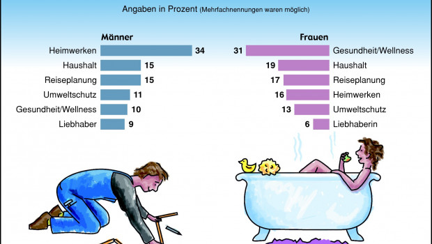 Nach dem Ergebnis einer Umfrage der Internetplattform "Yahoo! Clever" liegt bei deutschen Männern der Wunsch, besser zu heimwerken, deutlich vor dem, ein besserer Liebhaber zu sein. Auf die Frage "Worin wollen Sie besser werden?" antworteten 38 Prozent mit "Heimwerken", 37 Prozent mit "Computer- und Internetkenntnisse" sowie 21 Prozent mit "Gärtnern". Auf dem letzten Platz rangiert der Wunsch, ein besserer Liebhaber zu sein (neun Prozent). Nicht viel anders sieht das Ergebnis bei den deutschen Frauen aus. Ganz vorne liegt beim weiblichen Geschlecht der Wunsch nach besseren Kenntnissen im Bereich Wellness/Gesundheit (31 Prozent), gefolgt von Haushalt (19 Prozent), Reiseplanung (17 Prozent) und Heimwerken (16 Prozent). Eine bessere Liebhaberin wollen nur sechs Prozent sein. Die Klischees, was andere Länder betrifft, werden durch die Umfrage voll erfüllt. Die Briten wollen in erster Linie besser kochen (40 Prozent; an dritter Stelle liegt hier das Gärtnern), die Italiener wollen kreativer sein, die Spanier mehr musizieren. Dafür liegt in Spanien der Nachholbedarf im Liebesleben bei nur drei Prozent. Befragt wurden insgesamt 4.000 Personen in Europa, davon 1.000 in Deutschland.