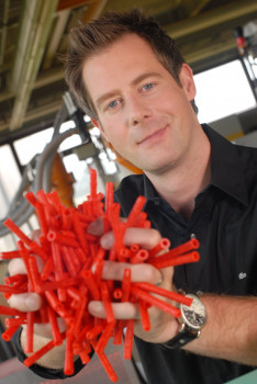 Leonard Diepenbrock (35) übernahm jetzt offiziell die Geschäftsführung der Tox-Dübel-Technik GmbH & Co. KG. Der RTL-Moderator und Journalist steht nun in dritter Generation dem mittelständischen Familienbetrieb vor. Tox profilierte sich als der Erfinder des Allzweckdübels und feiert in diesem Jahr sein 60. Firmenjubiläum am neuen Standort im schwäbischen Krauchenwies.