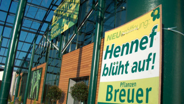 Heute eröffnet das Sagaflor-Mitglied Pflanzen Breuer in Hennef. Dabei handelt es sich um den ersten Neubau, an dem der überarbeitete Auftritt des Sagaflor-Konzeptes "Grün erleben" umgesetzt wird. Am Standort St. Augustin hatte Breuer bereits im Herbst auf das neue Erscheinungsbild umgestellt. Die neue Filiale verfügt über eine Gesamtfläche von 9.000 m², davon 3.900 m² Gewächshaus. Schwerpunkt sind Pflanzen sowie dekorative Sortimente für außen und innen.