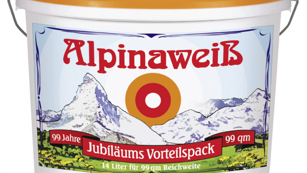 Vor genau 99 Jahren ließ der Farbenfabrikant Dr. Robert Murjahn "Alpinaweiß" als Marke eintragen. Damals inspirierte ihn der Blick aus seinem Hotelfenster im schweizerischen Luzern auf die strahlend weißen schneebedeckten Alpen so sehr, dass er sich für den Namen "Alpina Weiß" für seine neuentwickelte Wandfarbe entschied. Zum ersten Mal konnte damals Wandfarbe, die nur als Pulver angeboten wurde, in kaltem statt in erhitztem Wasser angerührt werden. Den Geburtstag feiert die Marke mit einem Alpinaweiß-Nostalgiegebinde, das mit 14 Litern Inhalt eine Reichweite von 99 m² ermöglicht.
