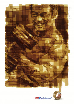 Beim Internationalen Werbefestival in Cannes wurden in diesem Jahr erstmals herausragende Gestaltunsgsideen mit dem "Design Lion" ausgezeichnet. Unter den Gewinnern ist auch Tesa: Drei neue Motive für das Verpackungsband Tesapack erhielten den Silbernen Löwen. Die Kampagne verdeutlicht die besondere Stärke des Produktes mit Motiven, die für Kraft stehen: ein Boxer, ein Sumo-Ringer und ein Bodybuilder. Aber nicht nur die bildliche Darstellung, sondern vor allem die Herstellungsweise aus Klebebändern, befand die Jury, sorgen für die besondere Wirkung der Anzeigenmotive. Entstanden sind sie in einer Kooperation zwischen Tesa, der Werbeagentur Jung von Matt und dem amerikanischen Künstler Mark Khaisman, der in seinen Arbeiten häufig Klebebänder verwendet.
