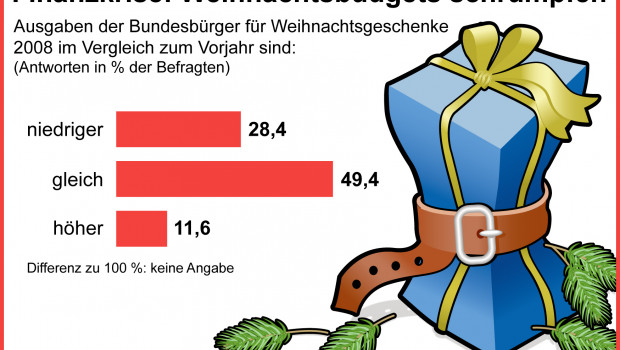 In diesem Jahr wollen die Deutschen für Weihnachtsgeschenke weniger ausgeben als noch im letzten Jahr. Die geplanten Ausgaben liegen mit durchschnittlich 242 € ca. zehn Prozent unter dem Betrag, den sie durchschnittlich im letzten Jahr ausgegeben haben (268 €). Das ergab eine repräsentative Umfrage, die TNS Infratest im Auftrag des Online-Marktplatzes eBay durchgeführt hat. Die regionalen Unterschiede sind gravierend: Während die Berliner mit durchschnittlich 202 € mit Abstand am wenigsten Geld für Weihnachtsgeschenke ausgeben, liegt das Weihnachtsbudget in Bayern mit 263 € im Durchschnitt fast 30 Prozent höher. 28,4 Prozent aller Deutschen planen, in diesem Jahr weniger Geld für Weihnachtsgeschenke auszugeben als im vergangenen Jahr. Mehrausgaben im Vergleich zum Vorjahr planen dagegen nur 11,6 Prozent. Der Anteil derjenigen, die ganz auf den Kauf von Weihnachtsgeschenken verzichten wollen, hat sich nahezu verdoppelt - er ist von 2,6 Prozent im Vorjahr auf 4,8 Prozent in diesem Jahr gestiegen.