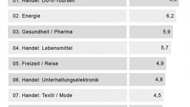 Eher stagnierendes Wachstum wird dem Lebensmittelhandel (5,7) vorausgesagt, während der Freizeit-/Reiseindustrie (4,9) und dem Handel mit Unterhaltungselektronik (4,8) ein leicht negativer Verlauf prognostiziert werden. Am schlechtesten beurteilen die Experten die Geschäftsverläufe von Textil- (4,5), Möbel- (4,4) und Automobilhandel (4,1). Letzterer wird sich damit nach Meinung der Befragten trotz der jüngst von der Bundesregierung verordneten "Abwrackprämie" auch in den nächsten Monaten nur unterdurchschnittlich entwickeln.
