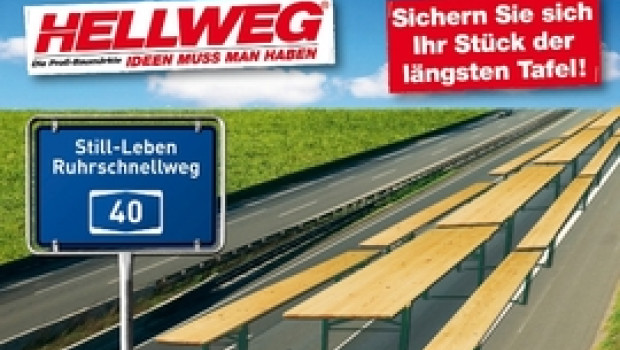 Der Dortmunder Bau- und Gartenmarktbetreiber Hellweg engagiert sich für den "Still-Leben Ruhrschnellweg", einem Leuchtturmprojekt des Kulturhauptstadtjahres 2010. Hellweg wird das Projekt durch die Beschaffung und Bereitstellung der 20.000 Tischgruppen für die längste Tafel der Welt unterstützen. Im Rahmen des Projekts "Still-Leben Ruhrschnellweg - Die Metropole feiert" wird am 18. Juli 2010 die Autobahn A40/B1, Hauptschlagader des Ruhrgebiets und eine der meistbefahrenen Autobahnen Europas, 31 Stunden lang für ein internationales Nachbarschaftsfest gesperrt. Auf einer Strecke von 60 Kilometern soll aus 20.000 Tischen eine Tafel der Kulturen, Nationen und Generationen entstehen. Am Tag der Veranstaltung werden insgesamt 1,5 Mio. Besucher erwartet.Die Zentrale von Hellweg in Dortmund liegt direkt an der A 40. Außerdem betreibt das Unternehmen 20 Filialen im Ruhrgebiet, häufig direkt am Hellweg. Darüber hinaus sind über 1.000 Mitarbeiter in der Region beschäftigt.