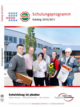 Die Schulungsabteilung der Hagebau blickt auf eine Rekord-Saison 2009/2010 zurück. Mehr als 10.500 Teilnehmer haben von dem Angebot Gebrauch gemacht – so viele wie nie zuvor. Jetzt hat der Trainingsbereich sein neues Programm „Entwicklung ist planbar“ (s. Bild) für die kommende Saison vorgelegt. Die komplett neu gestaltete Broschüre vereint dabei erstmals alle Trainings von Hagebau und Zeus in einem Katalog: insgesamt über 160 Seminare. Neu in das Schulungsprogramm aufgenommen wurde das Kapitel „Gesellschafter“, das sich nur an Geschäftsführer und Inhaber richtet. Zusätzlich geschaffen wurde auch der Bereich „Personaldienstleistungen“. Die dort aufgeführten Trainings sollen es ermöglichen, Mitarbeiter anhand von Stärken und Schwächen einzuschätzen und zu bewerten.