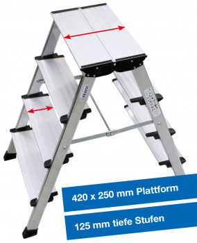 Den neuen Tritt Treppo von Krause zeichnen seine überragenden Sicherheitsmerkmale aus. Dazu zählen 125 mm tiefe Stufen, die für einen extra sicheren und komfortablen Stand sorgen, ebenso wie die große Stand-Plattform mit 420 x 250 mm Standfläche zur vollen Nutzung und die extra großen, bodenschonenden Fußkappen. Durch die mit einer Hand verwendbaren Sperren wird ein Zusammenklappen verhindert. Der Tritt ist leicht und platzsparend verstaubar und in den Größen 2x3 und 2x4 Stufen erhältlich. Weitere Informationen zu dem Unternehmen oder den Krause-Produkten und individuellen Dienstleistungen unter:www.krause-systems.de