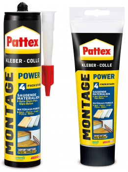 Der Pattex Montage Kleber Power überzeugt mit kraftvollen Verklebungen im Innen- und Außenbereich. Vorteile: Dank seiner starken Anfangshaftung und hohen Endfestigkeit überzeugt das bewährte Produkt Verbraucher und sorgt so für hohe Drehzahlen am Regal. Der gebrauchsfertige Pattex Montage Kleber Power ist das richtige Produkt für kraftvolle Befestigungen innen und außen. Er eignet sich besonders zum sicheren Kleben von vielfältigen Anwendungen wie zum Beispiel Türrahmen, Dekor-Elementen, leichten Regalen, Hausnummern und Schlüsselbrettern sowie zur Montage von Dämmplatten, Holzpaneelen und Styroporplatten.www.pattex.de