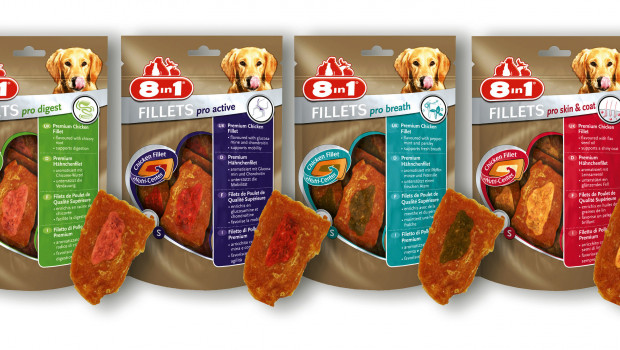 Die neuen „8 in1 Fillets Pro“ bestehen aus fettarmem Hähnchenfleisch kombiniert mit funktionellen Inhaltsstoffen in einem „Nutri-Center“. Erhältlich in zwei Größen und vier Varianten: „8 in1 Fillets pro skin & coat“ mit Leinsamenöl für glänzendes Fell, „8 in Fillets pro active“ mit Glucosamin und Chondroitin unterstützen die Gesunderhaltung der Gelenke, Sehnen und des Bänderapparates. „8 in1 Fillets pro digest“ tragen dank Chicoréewurzeln zusätzlich zu einer gesunden Darmflora bei. „8 in1 Fillets pro breath“ helfen mit Pfefferminz und Petersilie gegen Mundgeruch. www.8in1.de