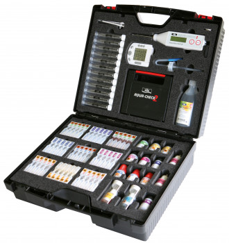 Wasserwerte auf Knopfdruck laborgenau bestimmen. Das Profi-Photometer „Aqua-Check 2“ von Söll macht’s möglich. Das handliche Messgerät gibt bis auf die Nachkommastelle genau Auskunft über die Konzentration der folgenden elf Parameter im Wasser: Ammonium, Nitrit, Nitrat, pH-Wert, Chlor, Phosphat, Silizium, Kupfer, Sauerstoff, Fluorid und Eisen. Dabei ist das „Aqua-Check 2“ leicht zu bedienen. Angeboten wird das Gerät in einem robusten Hartschalenkoffer, der umfangreiches Zubehör, wie Farbindikatoren, Teströhrchen und Timer enthält. www.aqua-check.de