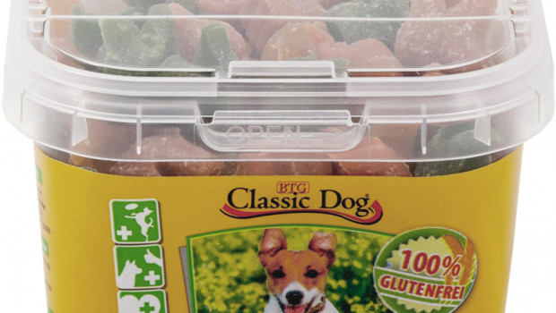 Die BTG System-Logistik hat ihre Eigenmarke „Classic“ um eine neue glutenfreie Linie im Snackbereich erweitert. Der „Classic Dog Trainings-Mix“ etwa ist die ideale Belohnung für Hunde, die kein Gluten vertragen. Der Snack ist garantiert glutenfrei und rein vegetarisch. Demzufolge ist er ideal geeignet für Hunde, die an einer Futtermittelunverträglichkeit, verursacht durch Gluten, leiden. Da er unter drei Prozent Fett beinhaltet, kann er problemlos zwischen den Mahlzeiten gefüttert werden. Dank seiner praktischen, wiederverschließbaren Verpackung bietet sich der Snack als Belohnung während des Trainings an. Neben diesem Snack hat die BTG drei neue glutenfreie Kaustangen in das Sortiment aufgenommen.www.classic-heimtiernahrung.de