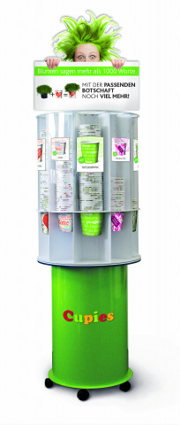 Floramedia bringt wasserdichte Übertöpfe aus Pappe mit aufgedruckten Botschaften auf den Markt. Denn Blumen sagen mehr als tausend Worte! Mit der passenden Botschaft aber noch viel mehr! So wird aus einer üblichen Topfpflanze ein preisgünstiger und schöner Geschenkartikel.Der Hintergrund der Idee ist, dass Topfpflanzen als Geschenkartikel immer beliebter werden, da sie länger halten und meist auch günstiger sind als Schnittblumen. Doch eignen sie sich in ihrer Urform nicht als Geschenk, und der Konsument muss zusätzlich eine Manschette oder einen Keramikübertopf kaufen, was das Geschenk aber wiederum zu teuer macht. Daher hat Floramedia die so genannten "Cupies" entwickelt. Es gibt sie in zwei Größen, passend für 9er- und 12er-Töpfe. Der Konsument kann über ein drehbares Permanent-Display aus fünf verschiedenen Botschaften frei wählen: "Herzlichen Glückwunsch", "Danke", "Gute Besserung", "Viel Glück" und "Ich hab dich lieb". Mit einem Endverkaufspreis zwischen 1 € und 1,50 € werden die "Cupies" zu einem klassischen Mitnahmeartikel, der keiner großen Überlegung bedarf, ihn zu kaufen. "Cupies" sind eine Ergänzung und Aufwertung des Topfpflanzensortiments und sorgen für Zusatzumsätze durch Spontankäufe.