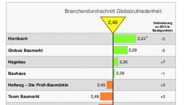 Seit 2008 haben die Bau- und Heimwerkermärkte im Kundenmonitor Deutschland bei der Globalzufriedenheit acht Basispunkte gut gemacht. Sie erreichen nun den Wert 2,40 (2008: 2,48) und damit den besten Wert seit Beginn der Branchenmessung im Jahr 1993. Im Vergleich zu anderen großen Filialhandelsbranchen sind die Kunden aber noch immer deutlich unzufriedener mit den Leistungen der Baumarktbetreiber, beschreibt die Servicebarometer AG die aktuellen Ergebnisse.