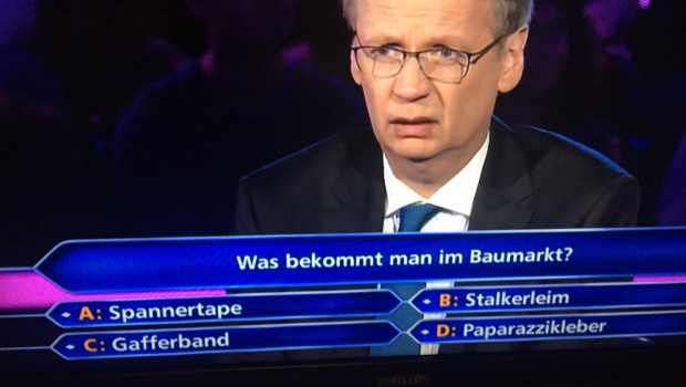 EnterdiymentJauchs Malereicannabis10.03.2015Wer sich im Baumarkt auskennt, wird vielleicht mal Millionär: Günther Jauch stellt in seiner Fernsehsendung immer wieder gerne Fragen zu Malereicannabis, Paparazzikleber und anderen DIY-Sortimenten: Jauchs Baumarktfragen als diyonline.de-Galerie.Zur Startseite