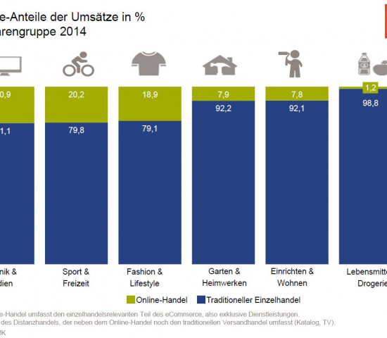 Aktueller Online-Anteil: Im Jahr 2014 wurden 8,5 Prozent des ge-amten deutschen Einzelhandelsumsatzes über das Internet abgewickelt. Dabei wird dieser Wert durch den niedrigen Online-Anteil im Lebensmitteleinzelhandel (inklusive Drogerieartikel) von 1,2 Prozent gedrückt. Bezogen auf den reinen Nonfood-Umsatz betrug der Online-Anteil in 2014 bereits 15,3 Prozent.Heutige E-Commerce-Anteile nach Warengruppe: Die Bedeutung des Online-Handels ist aktuell in den Sortimenten Technik und Medien, Sport und Freizeit sowie Fashion und Lifestyle am höchsten. In diesen drei Segmenten werden aktuell rund ein Fünftel der Einzelhandelsausgaben online getätigt.Relative Bedeutung der Umsatzvolumina: Die Notwendigkeit, beide Dimensionen - den Anteil der Warengruppe am Einzelhandel und den Anteil von Online innerhalb der Warengruppe - gegenüberzustellen, wird am Lebensmitteleinzelhandel deutlich: Obwohl der Online-Anteil mit 1,2 Prozent auf einem sehr niedrigen Niveau liegt, ist die Bedeutung des Online-Handels mit 2,6 Mrd. € Umsatz in 2014 nicht zu vernachlässigen. Der Verdrängungsdruck auf den stationären Handel ist noch gering. Für Branchen wie Logistikdienstleister, die mit dem Online-Handel eng verbunden sind, ist das Online-Geschäft aber bereits wichtig.Soziodemografie: Unter anderem hat die Familienstruktur einen Ein-fluss darauf, wie online-affin ein Haushalt ist: Mit wachsender Größe des Haushalts sinkt der Anteil der Online-Ausgaben. Und auch das Geschlecht spielt eine Rolle: Männer in Einpersonenhaushalten haben mit 17,8 Prozent beispielsweise einen doppelt so hohen Online-Ausgabenanteil wie alleinlebende Frauen (8,8 Prozent).Grenzen des Wachstums: E-Commerce wird eine natürliche Wachstumsgrenze erreichen, die sich je nach Reifegrad der Online-Erschließung der Warengruppen unterscheidet. Bei Online-Sortimenten erster Stunde sind bereits Sättigungstendenzen erkennbar. So konnte etwa der Online-Anteil für Bücher/Medien von 2013 auf 2014 nur noch marginal wachsen. Auch das Segment Technik und Medien wuchs im vergangenen Jahr mit nur knapp 8 Prozent im Vergleich zu den Vorjahren (20-30 Prozent p .a.) deutlich weniger. Ursachen dafür sind auch die Innovationskraft und Anpassungsfähigkeit des stationären Handels. Er hat bereits erfolgreich mit neuen Konzepten und Omnichannel-Lösungen auf den intensivierten Wettbewerb reagiert und damit selbst die Online-Dynamik vorangetrieben.Prognose des Online-Anteils bis 2025: Auch wenn sich die Wachstumsraten aufgrund von Sättigungstendenzen abschwächen werden, erwartet GfK bis zum Jahr 2025 nahezu eine Verdopplung des Online-Anteils am gesamten Einzelhandelsumsatz (d. h. Food und Nonfood) auf rund 15 Prozent. Bezogen auf Nonfood, also exklusive Lebensmittel und Drogerieartikel, erwartet GfK einen Anteil von sogar rund 20 Prozent.Künftige Verschiebung der Warengruppen-Gewichte: Wenngleich alle Branchen bis zum Jahr 2025 absolut weiter wachsen werden und Technik und Medien auch künftig den Löwenanteil ausmachen wird, verschieben sich die Gewichte zugunsten der Online-Einsteiger im Bereich Lebensmittel und Drogerie, Einrichten und Wohnen sowie Garten und Heimwerken. Lebensmittel und Drogerie wird den größten Anteilszuwachs erreichen. Das Sortiment dürfte seinen Anteil am Online-Handelsvolumen von derzeit 8 auf 16 Prozent verdoppeln.