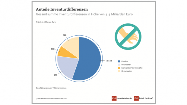 Der Schaden durch Inventurdifferenzen im deutschen Einzelhandel ist im vergangenen Jahr weiter gestiegen. „4,4 Milliarden Euro entgingen 2019 dem Handel durch Diebstähle und organisationsbedingte Verluste – das sind rund 5 Prozent mehr als im Vorjahr“, kommentiert Frank Horst, Sicherheitsexperte des EHI Retail Institute, die Ergebnisse der aktuellen Studie „Inventurdifferenzen im deutschen Handel 2020“. „Rein statistisch gesehen wird durch jede Person in Deutschland ein Warenwert von knapp 30 Euro pro Jahr gestohlen.“