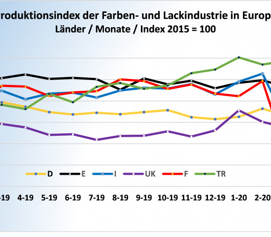 Die hohe Nachfrage aus dem DIY-Bereich hat dafür gesorgt, dass die Produktion der deutschen Farben- und Lackindustrie im Mai stabil geblieben ist. Die Nachfrage nach Industrielacken sinkt dagegen nach wie vor. So ist der Produktionsindex von 80,1 Punkten im April auf 81,0 Punkte im Mai gestiegen (Index 2015 = 100). Zum Vergleich: Im Februar war der Indexwert bei 96,4 gelegen. Die Zahlen hat das spezialisierte Marktforschungsunternehmen Chem Research veröffentlicht.