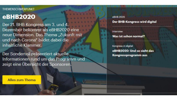 Die Fachzeitschrift diy und ihr Internetportal diyonline unterstützen den diesjährigen elektronischen Kongress des BHB am 3. und 4. Dezember. Der 21. BHB-Kongress hat in diesem Jahr Corona-bedingt eine neue Dimension bekommen, er findet nämlich als eBHB2020 elektronisch statt. Das Thema „Zukunft mit und nach Corona“ bildet dabei – wenig erstaunlich – die Klammer.