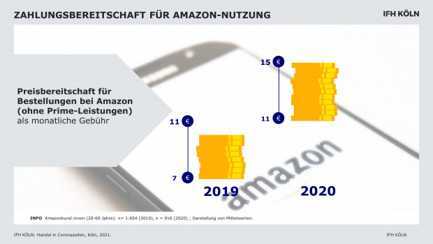 Bequemlichkeitsaspekte werden in Zeiten, in denen Menschen viel zuhause sind, noch relevanter. Auch beim Shoppen im Internet wollen Kunden eine lange Suche nach bestimmten Produkten vermeiden. Das zeigen aktuelle Zahlen des IFH Köln. Während im Jahr 2019 die Preisbereitschaft für das Suchen und Kaufen bei Amazon (ohne Prime) durchschnittlich zwischen sieben und elf Euro monatlich lag, ist diese im Coronajahr auf elf bis 15 Euro gestiegen. 59 Prozent der Befragten gaben darüber hinaus an, bei ihrem Einkauf auf nachhaltiges Verhalten zu achten.