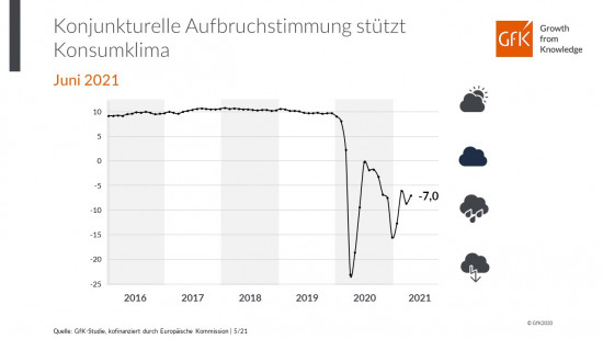 Trotz der bislang vorgenommenen oder angekündigten Öffnungen und Lockerungen sind nach wie vor eine Reihe von Konsummöglichkeiten vor allem in Dienstleistungsbereichen nicht oder nur sehr eingeschränkt möglich. Dies dürfte momentan eine spürbare Erholung der Anschaffungsneigung bremsen, meint man bei der GfK.