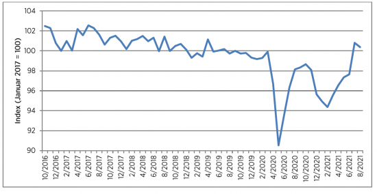 Nach fünf Monaten im Aufwärtstrend trübt sich die Verbraucherstimmung der Deutschen erstmals wieder ein. Wie aus dem aktuellen HDE-Konsumbarometer hervorgeht, sinkt der Index im August leicht. Die zuletzt ins Stocken geratene Impfkampagne und steigende Corona-Infektionszahlen hätten den geringfügigen Rückgang begünstigt, erklärt der Verband. Das Konsumbarometer verbleibt dennoch auf hohem Niveau. In der Entwicklung der Teilindikatoren zeige sich, wie fragil die Erholung der Verbraucherstimmung noch sei, hebt der HDE hervor. Sie stehe in starker Abhängigkeit vom Infektionsgeschehen und sei entsprechend schwankungsanfällig.