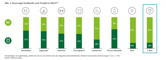 72 Prozent der Befragten in Deutschland gaben an, für den E-Bike-Kauf einen stationären Laden aufsuchen zu wollen. In Österreich liegt der Anteil bei 89 Prozent in der Schweiz bei 91 Prozent. Auf dem DACH-Markt insgesamt zieht es potenzielle Kunden neben E-Bikes (82 Prozent) nur für Skier (82 Prozent) und Laufschuhe (72 Prozent) in vergleichbarem Maß in den stationären Handel. Der Grund dafür lasse sich neben dem hohen Preis mit der Komplexität von E-Bikes erklären. Der Konsument schätze fachkundige Beratung und wolle das Produkt vor dem Kauf ausprobieren, so die Forscher.