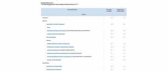 Nimmt man alle Einzelhandelsunternehmen zusammen, wurde in Deutschland im Juli 2021 kalender- und saisonbereinigt real 5,1 Prozent weniger umgesetzt als im Vormonat. Wegen deutlich gestiegener Preise habe der Rückgang nominal (nicht preisbereinigt) nur 4,5 Prozent betragen, so die Statistiker. Beim Vormonatsvergleich sei zu beachten, dass der Juni 2021 aufgrund der bundesweit noch sinkenden Corona-Inzidenz und der Aufhebung der sogenannten Bundesnotbremse ein umsatzstarker Monat war (kalender- und saisonbereinigt real 4,5 Prozent gegenüber Mai 2021). Im Vergleich zum Vorkrisenmonat Februar 2020 war der Einzelhandelsumsatz im Juli 2021 dagegen kalender- und saisonbereinigt real 3,8 Prozent höher. Gegenüber dem Vorjahresmonat Juli 2020 sank der Umsatz im Juli 2021 real um 0,3 Prozent und stieg nominal um 1,7 Prozent.