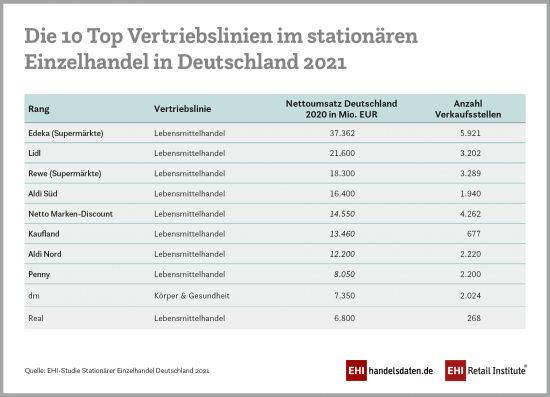 Auch wenn das Corona-Jahr dem Onlinehandel einen Boom beschert hat, so ist der Einzelhandel insgesamt dennoch weiterhin durch den stationären Vertrieb geprägt, so das Institut weiter. Die Top-4-Vertriebslinien des stationären Einzelhandels generieren mit 93 Mrd. Euro mehr Umsatz als der gesamte Onlinehandel in Deutschland. Fast alle Top-1.000-Händler besitzen eine eigene Internetpräsenz, knapp 36 Prozent der betrachteten stationären Vertriebslinien bieten dort auch tatsächlich ihre Waren an.