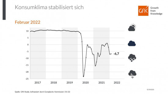 Nach drei Rückgängen in Folge legt die Konjunkturstimmung im Januar wieder zu. Die deutsche Wirtschaft ist nach Informationen des Statistischen Bundesamtes im vergangenen Jahr um 2,7 Prozent gewachsen. 2022 soll sich die Entwicklung beschleunigen, wobei laut GfK auch der private Konsum eine wichtige Rolle spielen wird. Dies setze allerdings voraus, so die Marktforscher, dass die Lieferkettenproblematik behoben werden könne.