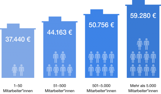Eine weitere Erkenntnis aus dem Bericht: Rund acht von zehn Befragten haben keine Ahnung, was auf dem Gehaltszettel der Kollegen steht. Gehalt ist in Deutschland immer noch ein Tabuthema, aber für die meisten Menschen die Nummer-1-Information bei der Jobsuche. Und: Am besten zahlen die Unternehmen in Hessen. Hier liegt das Mediangehalt bei 47.840 Euro. Danach folgen die Arbeitgeber aus Baden-Württemberg (47.806 Euro), Hamburg und Bayern (je 46.800 Euro). Auch zeigt der Gehaltsreport, dass größere Unternehmen höhere Gehälter zahlen als kleinere Betriebe.