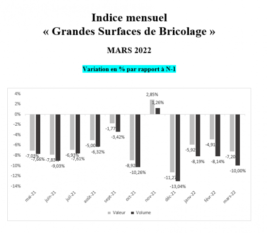 Auf dem französischen DIY-Markt setzt sich das Bild der zurückliegenden Monate fort. So meldet der DIY-Handelsverband FMB für den März ein Umsatzminus von 7,2 Prozent im Vergleich zum Vorjahresmonat, jedoch ein Plus von 17 Prozent gegenüber März 2019. Im ersten Quartal 2022 haben die Baumärkte in Frankreich 16,8 Prozent mehr umgesetzt als im ersten Quartal 2019.