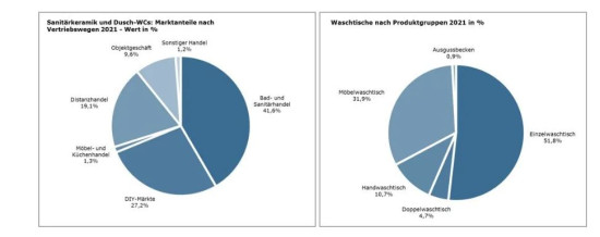 Die Inlandsmarktversorgung der untersuchten Länder liegt in diesem Zeitraum bei über 3,4 Mrd. Euro zu Herstellerabgabepreisen netto. Das entspricht einem Handelsvolumen brutto von mehr als 8,3 Mrd. Euro. Die Waschtische bilden mit mehr als 10,1 Millionen verkauften Produkten den größten Teilmarkt.